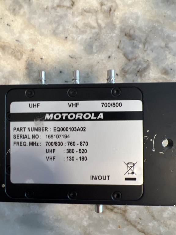 For sale is a Motorola Apx 8500 triplexer. The device was used approximately two years in a mobile application and pulled from service. It works properly in VHF, UHF and 700/800 public safety bands.