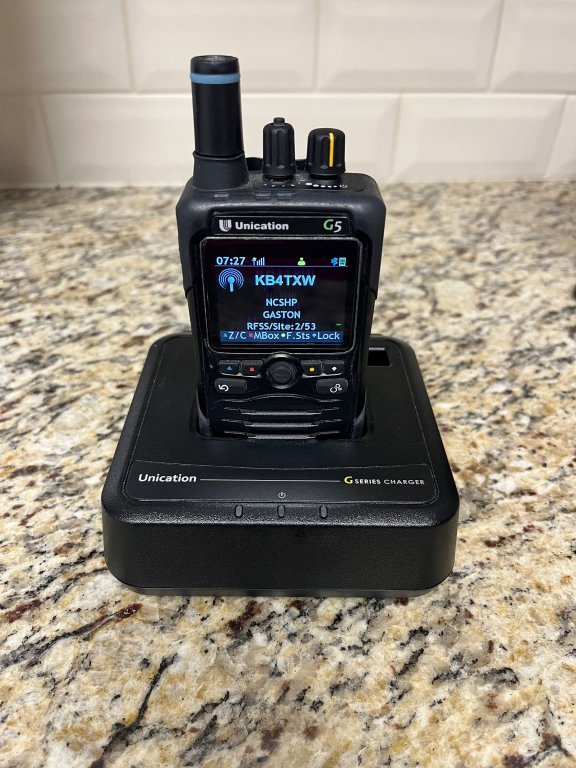A very nice Unication G5, 800 and VHF bands, in excellent condition with it has a screen protector installed. The firmware is v2.02, programmed with PPS 4.0. I bought it new, the warranty just expired in September 2025. It includes the desk charger with power supply and cable, stock antenna, battery. I will clear the programming before shipping.