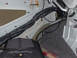 I ran both of the cables between the backseat and the body/door frame. I then took out the plastic door steps, and plastic piece that hides the seat belt "guts" and ran the cables under the carpet, then under the seats and up to the center console.