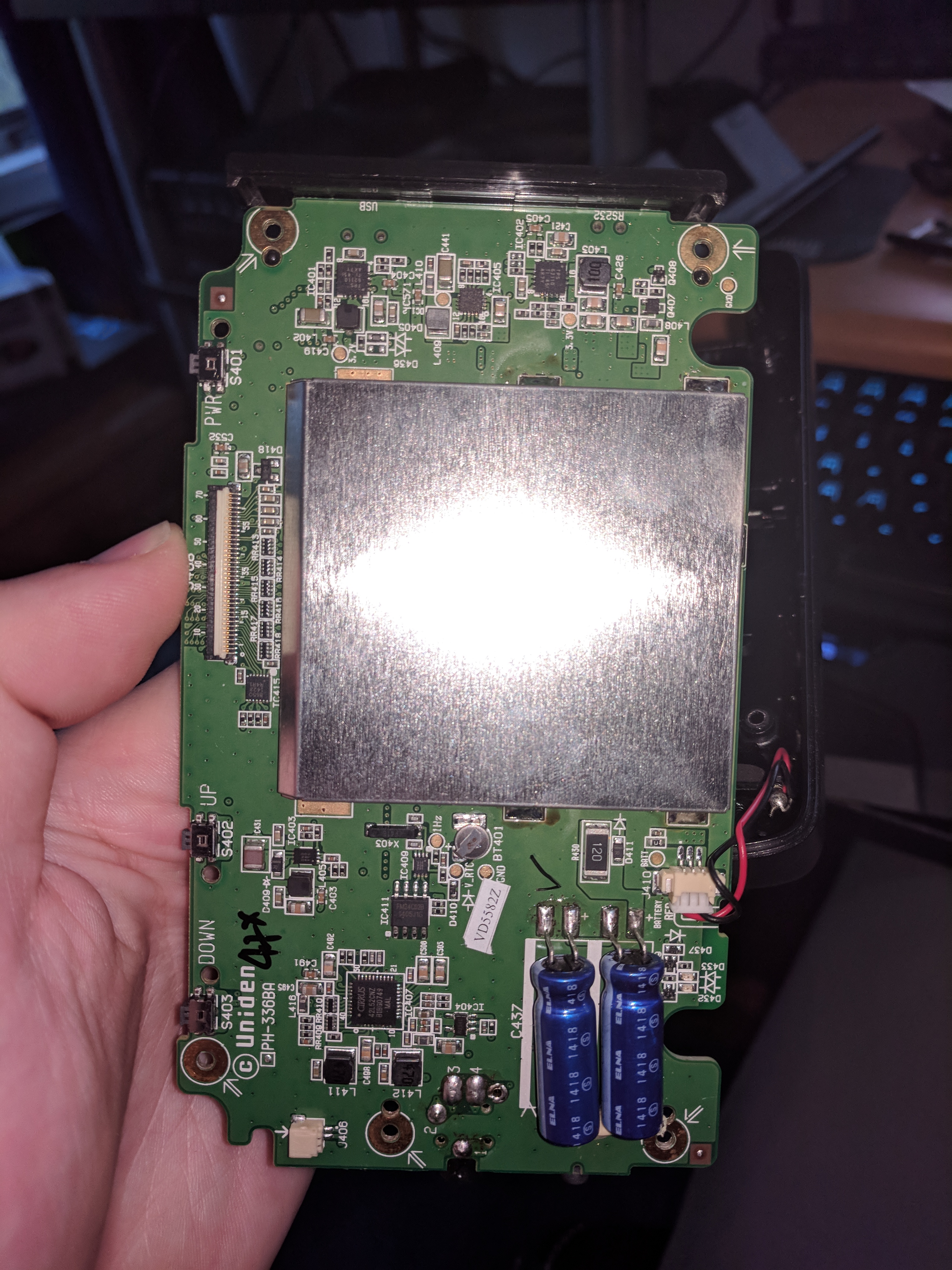Ugly but it works and its a heck of a lot cheaper than sending it to Uniden or buying a new scanner and it facilitates quick and easy battery replacements in the future. Note also that you could mount the battery breakout board on the back of the scanner so you don't see it, but in my application it would interfere with my mobile mount setup.